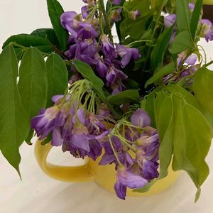 職場で生け花💐今日は庭の藤🟣 朝から久々の恵みの雨☔