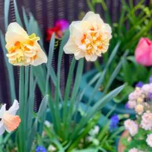 おはようございます😃✨ 今日は早起きして、観葉植物の鉢増しをしました🌿✨ パパとチビさんが起きてくる前に5鉢できました❣️ 朝から達成感を感じています🤩✨ 外には八重咲きのスイセンが咲いていました🥰💕 コストコの球根には、八重も混ざっていたようです🤗