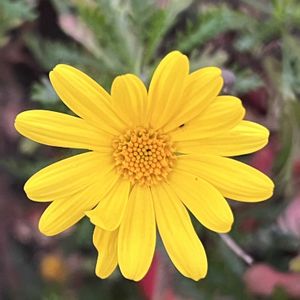 今日のお花 ユリオプスデージーです。 花期も長く 花の少ないこの時期に元気色のビタミンカラーで辺りをパッと明るくしてくれます。 レースのように繊細なシルバーグリーンの葉は カラーリーフとしても楽しめますね。🤗 南アフリカ原産。 キク科ユリオプス属の常緑低木。