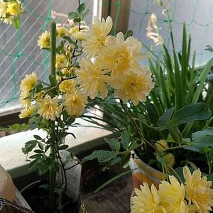 "モッコウバラ" ご近所の庭先、モッコウバラ(八重咲き)が咲き始めていました。 花びらが幾重にも重なって素敵だなぁ。 撮影日 2022.4.13