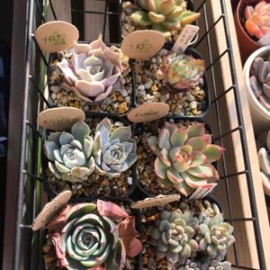 大和高原の多肉屋さんの苗^_^ 届いてから2回程水やりしたので、少し開いてきた気がする🙂 名前調べながら思ったのですが、流通名がいくつかあるものは、より正確な表示(本やi.c.nのサイトに載ってる表記)がしてあるように感じました! 例えば、エスター(別名ムーンガドニス?)とアモエナラウ065(別名ラウ165?) 偶然かな!?