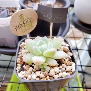 アイスグリーン このこもおすすめされて選んだこです。色白ですが、葉っぱの先が紅葉するとふんわりピンクになるそう。 すでにすこーしピンクですな! 10/17購入。 ○お水をあげた ○週末植え替え予定