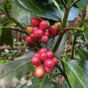 青木の実 裏山を散策していたら赤い実をつけた青木がたくさんありました。
