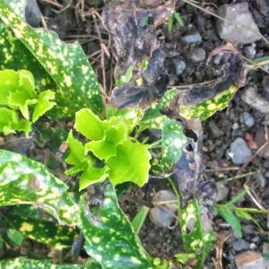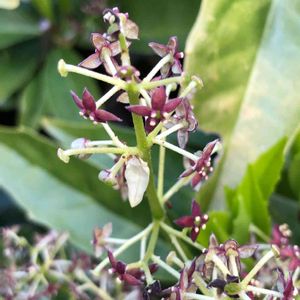 庭の草取りではじめて青木の花を見つけました! 鳥の置き土産で自生 調べてみたら雄花なので実が成りません😰 花言葉 若く美しい 変わらぬ愛