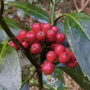 高尾山 アオキ(青木)、アオキ科(ミズキ科)アオキ属の常緑低木 🌼花言葉 「若く美しく」「永遠の愛」「変わらぬ愛」「初志貫徹」