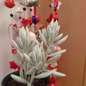 こんばんわ🌃 今日は玄関な置いてある銀月さん✨ この間出した吊るし雛と一緒に🎎 お水あげてもシワがとれません💧