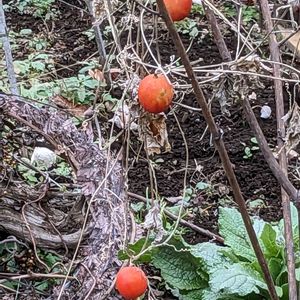 枯れ草や枯れ枝の中に カラスウリがひときわ 賑わいを占めています。