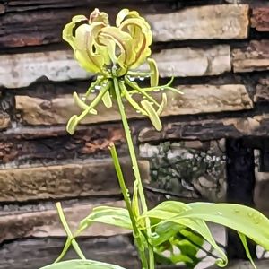 遊歩道の花壇の中に 暑い時には沢山のグロリオサが咲いていましたが 最後のグロリオサかな? 熱帯アジアのお花が 寒さにめげず最後の一花