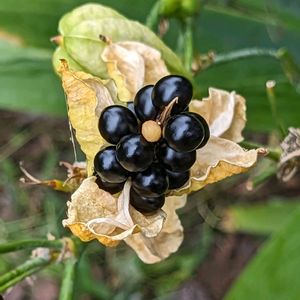 ヒオウギの実 またの名を ヌバタマ 漢字では 射干玉 野干玉 烏玉 烏球 万葉集の枕詞に使われるそうです。夜 黒