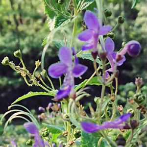 カリガネソウ オシベ弓なりに上に伸び 鳥の羽を広げたように 花弁が開いている姿が鳥の雁を連想するようです🍀 秋の涼しげな色ですね💞