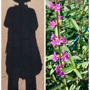 今朝は蓮のお花をみに太陽に 向かって行き帰りは太陽を 背に影か面白そうなので写メ てみました😱 ムーミン谷のスナフキンに似ていたので(笑)(笑) お盆に使うミソハギです💞