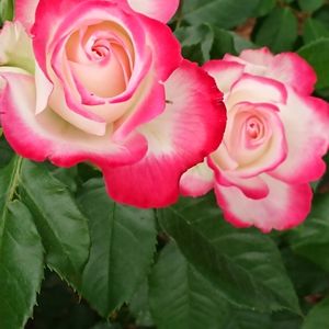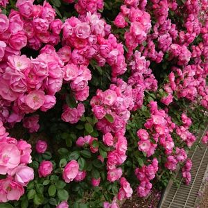 生垣に覆い被さるように 咲くバラの花 綺麗ですね💞