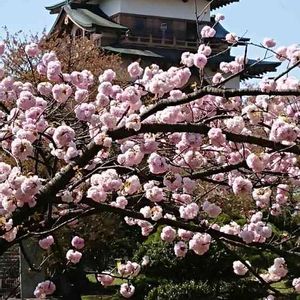 諏訪の高島城の八重桜(牡丹桜)とも言われています🎵 満開の桜とお城良く似合います🌸