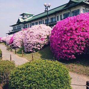 ホテルのツヅジ祭り 朝9時前に入場したら無料で素敵なホテルの庭園を人混みもなく優雅に拝見させていただきました。高台にある庭園から蒲郡の竹島が一望出来て❤️ ツヅジも見頃で綺麗でした🍀
