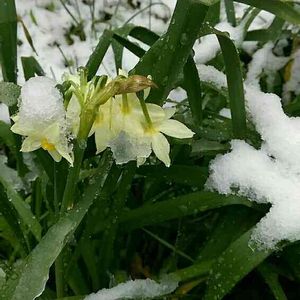 矢も盾もたまらなく(笑) ⛄外に出ちゃいました (๑´ლ`๑)フ°フ° 水仙も雪の中… 寒さをじっと凌いでます