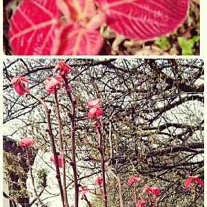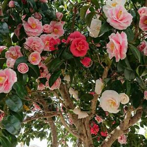 一本の木が二枝だ別れて 椿の競演です💞🌼🌺