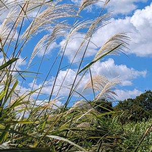 今日のお花ススキ 9月なかばに成っても 気温35度でもススキと雲は秋に近づいて要るようですネ ナンバンギセルを探しに ススキの根元ばかりを見ていたらナンバンギセルを見つけ空を仰いだら 素敵なススキた雲を眺める事になりました✌️