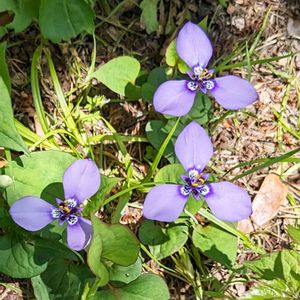 江戸建物園の脇の草むらに咲くチリアヤメ 紫の中に白い色も可愛い背丈が10センチ位で小振りの菖蒲です👌