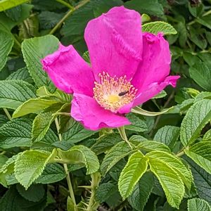 浜茄子のお花 初めて見たのは今から 60年前北海道の原生花園で一面に咲くハマナスの花を見て感動しました。 今では色々な所で見るとができますネ
