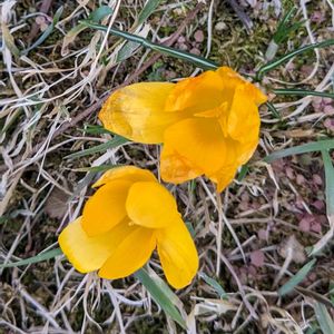 公園の芝生の中で咲く クロッカス枯れた芝生に黄色いクロッカス 可愛い🟡