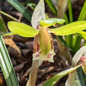 野川公園の自然園の木の下で咲くシュンラン 春が来ましたネ