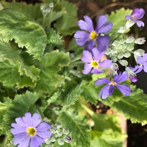 プリムラ マラコイデスの湖畔の夢です。 マラコイデスはうまく育てられないので苦手意識があるのですが、色とネーミングでお迎えを決めました😤 花が終わりかけなので色が悪いけど、青よりの紫、ときどきビンク、が気に入ってます👌 上手く行くと良いなぁ~。 いつも葉がとけちゃう…○| ̄|_💦