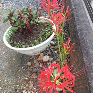 昨日は、1つ咲いていた 彼岸花🌺🌺 今日は、 3つ咲いてる😊 ほったらかしだから 年々 貧弱に😅 隣の鉢は、 恐る恐る切り戻しした サンパチェンス🌺🌺 なんとなく 盛り返してきた😊 涼しくなってきたけど どれだけ… いつまで 咲くのかな❓🤔🌺🌺 チョット持て余し気味の アーモンドネックレス🏈 しっかり根着いたみただけど ツル❓も太くて💪しっかりしてるから まだ イマイチ可愛く垂れ下がらない〜🤣🤣