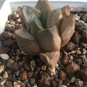 カチカチ茶色のハオルチアさん 綺麗な緑に復活出来るかな? 根っこもイマイチ出ていない🤔 しばらく過保護にしようか… 発根ツヤツヤ お願いします🙏