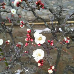 近くの神社の梅が、咲いていました💠 この梅の花が好きで、毎年 楽しみにしています✨ 枝が曲がっているところが好きです。 鼻を近づけると、春の香りがしました🐝