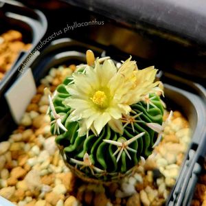 連休中に届いたサボテン エキノフォスロカクタス 白玉 Echinofossulocactus phyllacanthus 棘は短く、玉の下の細かな棘に包まれた茎?が特徴的ですね。