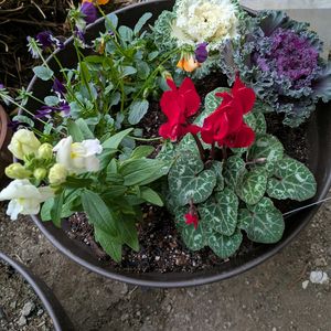 こんにちは😊 お正月用の鉢植えです。 葉牡丹はしっかり。💓 お花はまだこれから。 ビオラ、キンギョソウ、シクラメン💛❤️💜💚🤍🩷💛🧡 もう少ししたらもっと素敵になること🙏