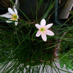 ゼフィランサス今年初開花♡2輪 カラカラの土壌を嫌う 4〜5年植えっぱなしでも大丈夫だが密になると花つきが悪くなる 植え替えは3月中旬から 4月下旬に 10年頃にカリ分の多い肥料を