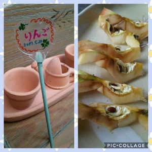 雨です☔ 先日 見切り 林檎買ってジャムにしようと 切ると 種から 根?芽?でてる? 試しに 植えて みよっと🌱 プラバン風 ピックも 惣菜フタで 作ってみた ど素人 センスはないが プラバンとしては 成功かな😁