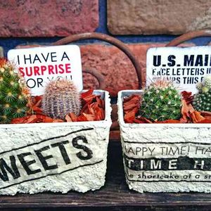 今日も雨。( ̄。 ̄) 嫌やなぁ。 去年、雑誌に載ってたセメント鉢の作り方…完コピ(左)。 サボテンとサインピックとバークチップはセンスやけどな(^w^)ぷぷぷ💨💨