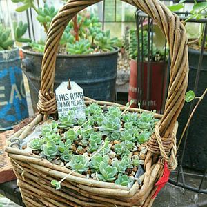 カゴに子持ち蓮華を仕立て直したのが、かわいくなってきた☺