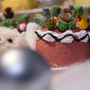 タニ友さんにいただいた ピーナッツ人形・くまサン🐻と、多肉の森🌱 赤くなる多肉に大好きなくまサン🐻で、 ルンルンな寄せ植えです♪