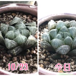 去年の9月にお迎えしたシワシワのハオルチア。 やっと光を透かして楽しめるまでになりました👀✨ まだまだプリプリツンツンになれるのかな~?