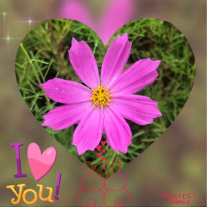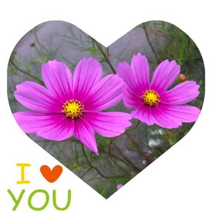 今朝 可愛らしく 寄り添う 二輪の コスモスの花に 出会った💓 可愛いから ハートの中に 閉じ込めちゃった...♥️