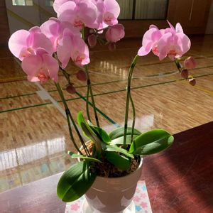 明日は卒業式💗 準備万端整いました🌸 保護者の方が花屋さんに勤務していて 胡蝶蘭2鉢とデンドロビウム2鉢頂いた 体育館へ 飾り華やかに🌸💓
