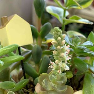 三年前に一緒に勤務した同僚から 先日寄せ植えを プレゼントしてもらった 多肉ちゃんに 今日見たら お花が咲いてたー❤️ 君の名は...