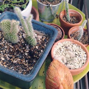 サボテンは朝日だけの日光浴でなんとか育ってます 多肉は徒長してしまいます 多肉迎えたい欲は、皆様の可愛い投稿で満たされてます