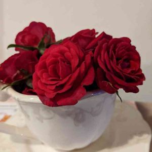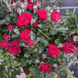 ミニバラ ボルドーコルダナ 黒星祭りから復活*✧(*´˘`*)✧* 花束のように咲いてくれました🌹 🏷真っ赤な火曜日♥️