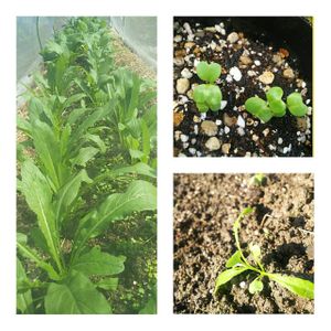 やっと暑さが収まったので、水菜を 外の平面プランターに植え付けしました。 そして暑さが収まる気配を感じていなかった9月上旬、6号鉢に播種&ライトを設置して室内管理栽培をしていた和風ベビーリーフミックスがありまして、 そちらは収穫時期到来&もう少し育てるなら間引き時期になったので 収穫と間引きをしました。 間引きしたものはベビーリーフサラダにして美味しくいただきました♪ 和風ベビーリーフミックスの中身は、京水菜・壬生菜・広丸葉高菜・紫丸葉高菜で、それに小松菜の種を少し混ぜて種まきしました。 残したものはそれぞれ1種類ずつ…のはずです。 紫丸葉高菜はもしかすると、無いかもしれません。