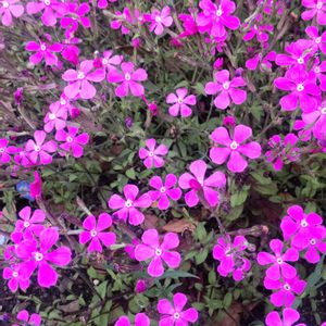 今日のお花 🌸シバザクラ🌸 外の石がきから垂れてます😄 毎年咲いてくれて、この花は結構大きめです❣️ シバザクラの後ろはこぼれ種からのシレネ ピンクパンサー🌸 ②🩷シレネ ピンクパンサーとネモフィラ💙 ③🌸シレネ さくらパンサーとネモフィラ💙 ④💓シレネ ピンクパンサー 💜ネペタ キャッツパジャマ 🤍スーパーアリッサム PW 🩷シレネのピンクパンサーはあちこちからこぼれ種 💜ネペタはPWアンバサダーで頂いた物 初開花です✨✨ 🤍スーパーアリッサム フロスティーナイト 勢いがすごい👏💕デカイ😅嬉しい悲鳴 今日は暑くなってきましたね もっと爽やかな日が続いて欲しいなぁ😚