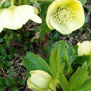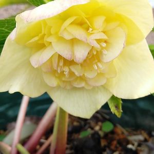 💛地植えしたクリスマスローズ(エレガンス,ライムイエロー中輪・八重咲き)~✨可愛いらしいです🎵💓💕❣️💛 みどりのまとめに、蕾から開花迄を、投稿しています~💛 良かったら、観て下さい~🎵💛