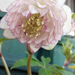 クリスマスローズ 58 オーレア系多弁セミダブル 花弁の先が、ほんのりピンクのピコが入っています。