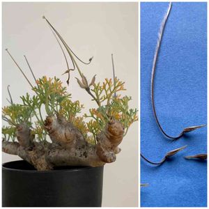 サルコカウロン ムルチフィツム(モンソニア ムルチフィダ)種ができた。鳥の頭から羽根が一本生えたみたいな不思議な種。種まきするならどっち向きに植えるんですかねぇ🤔