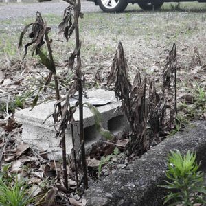 Green Snapならぬ,Withered Snapです。 自宅から駅までの道すがらの光景。除草剤の跡と思われます。いかなる植物も歓迎されない場所。鉄道の線路の中と駐車場。かわいそうですが,仕方がないのか。テデヌークとか,カマデカールの使用にとどめて欲しい気持ちもあります。