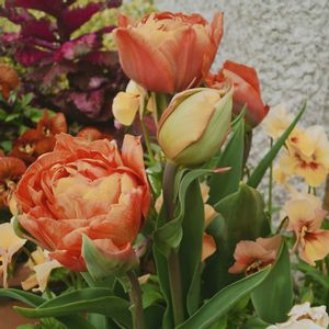 チューリップのラ・ベルエポックが咲き揃いましたのでひとまず投稿 🌷🌷 🌷🌷 🌷🌷 予想外の寒暖差と強風でビオラは今ひとつ咲き揃わず、ストックはチリチリ、金魚草はヘナヘナになり、他のチューリップとのタイミングが合わなかったりしてます💦自然には勝てない…