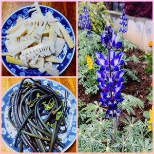 雨☔やっと止みました お隣さんから ワラビを頂きました そして 昨年 貰った ルピナス の種 沢山 花が咲いてます 犬友🐕幸っちゃんの家から また タケノコを頂いたので 一緒に炊き合わせにして頂きました 柔らかくて、美味しかったですよ~😋❤ 素敵な日曜日をお過ごし下さいね (*˘︶˘*)オヤスミナサイ.。.:* 山の幸に感謝です🥰